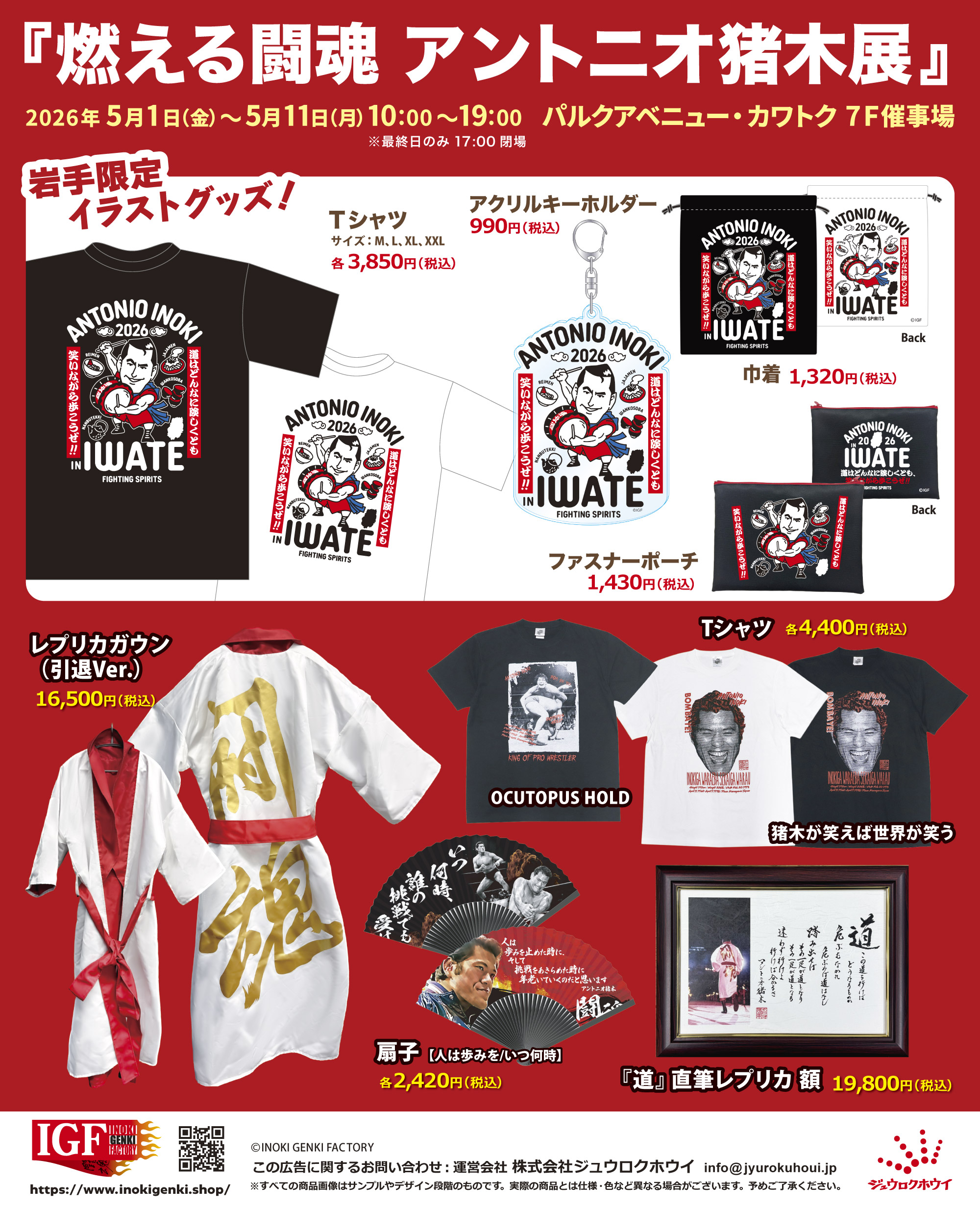 5/1(金)〜 『燃える闘魂 アントニオ猪木展』岩手 パルクアベニュー・カワトク 7F催事場に出店!